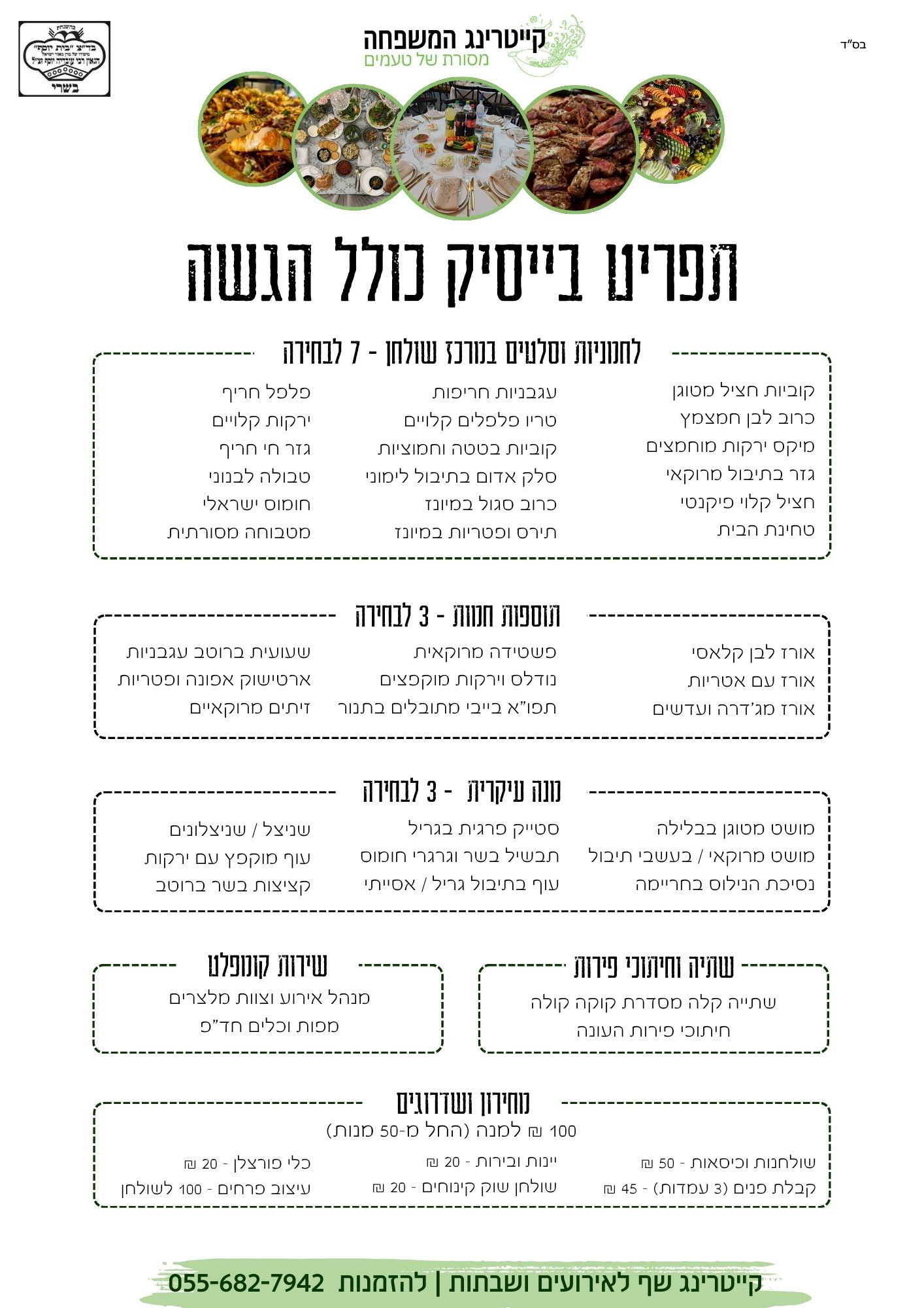 תפריט בייסיק כולל הגשה – פתרון מושלם לברית, בר מצווה, שבת חתן, חינה, אזכרה ואירועים משפחתיים.